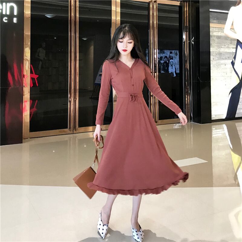 【 L 〜 5XL 】 大きいサイズ レディース 長袖 Vネック スカート お出かけ ドレス カジュアル 4XL 3XL 2XL 70716 かわいい 冬 コーデ 通販