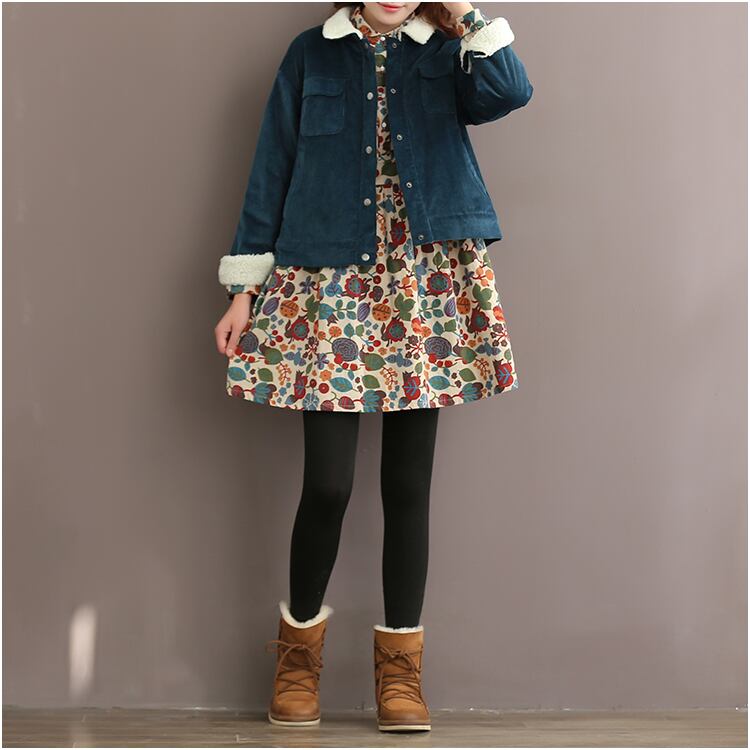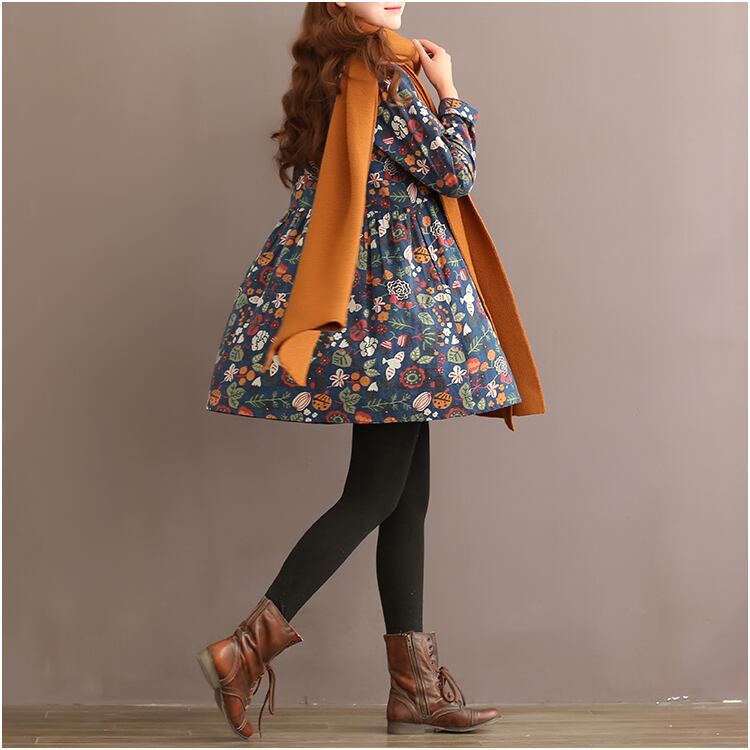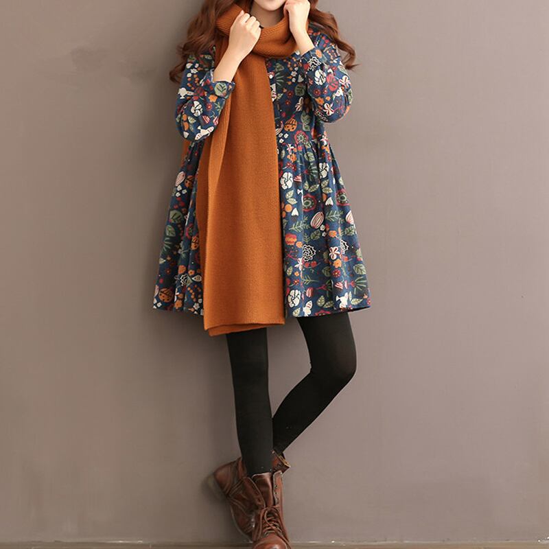 【 M 〜 2XL 】 大きいサイズ レディース 秋 春 レトロ プリント アップル カラー 長袖 ワンピース スカート ドレス 70708 カジュアル 春 コーデ膝丈 秋