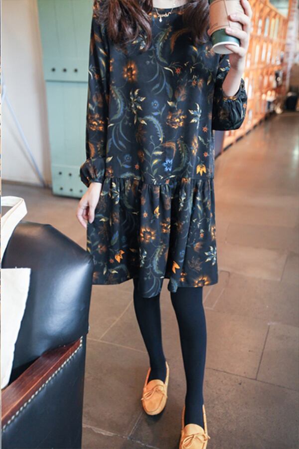 【 L 〜 5XL 】 大きいサイズ レディース 花柄 フィッシュ テール ボトム シャツ ワンピース ドレス 4XL 2XL 70706 秋 コーデ カジュアル 長袖 ロング