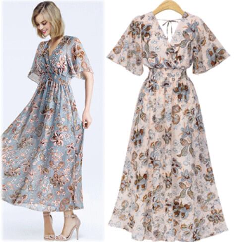 【 M 〜 4XL 】 大きいサイズ レディース 夏 新作 Vネック ドレス ハイウエスト フリル ロング スカート 大きいサイズ 夏 ドレス 半袖 4xl 3xl 70503