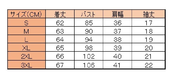 3XL: 着丈 67 cm バスト106cm 肩幅 41 cm 袖丈22 cm