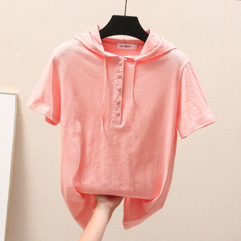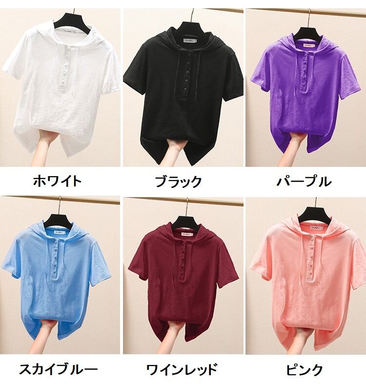 【 XL 〜 3XL 】 大きいサイズ レディース 夏 半袖 パーカー ゆったり タイプ コットン アンダー シャツ 着回し コーデ フード Tシャツ 3L 2XL 2L 70808