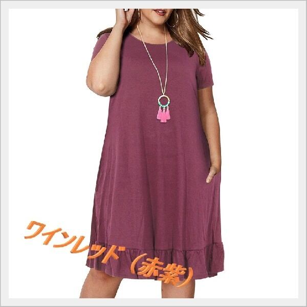★ 夏新作 プラスサイズ 半袖 ポケット ルーズ ドレス ☆