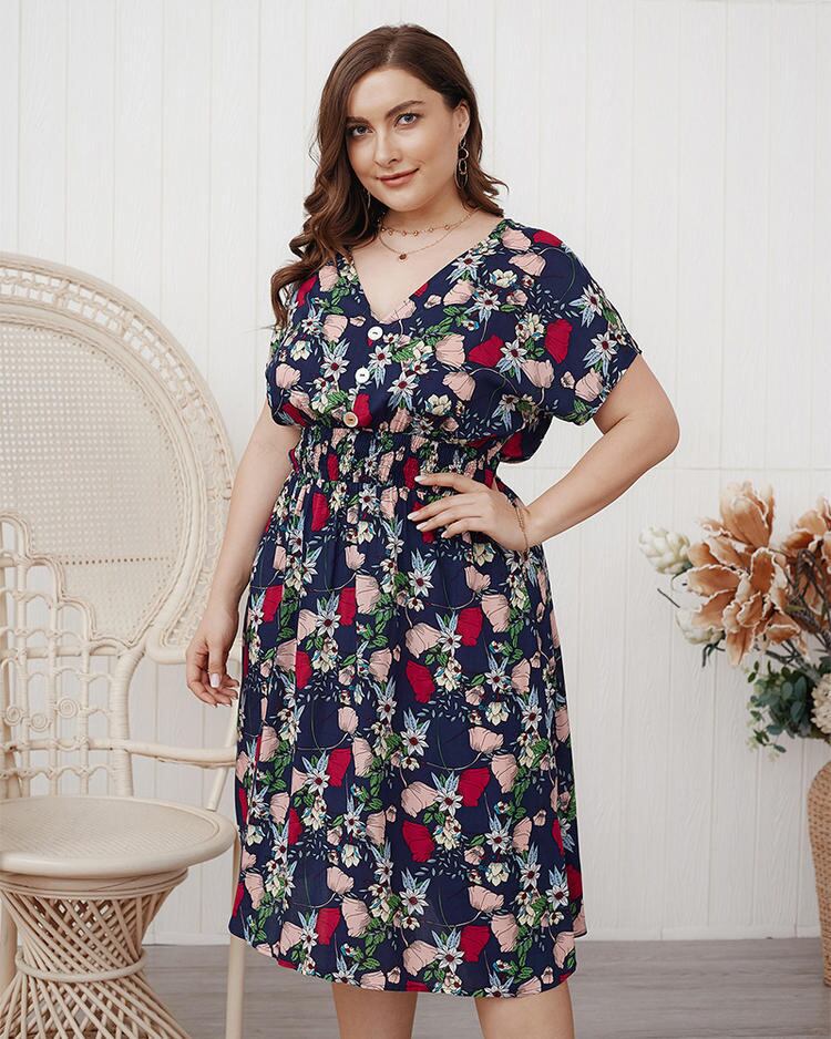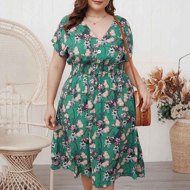 【 XL 〜 4XL 】 大きいサイズ レディース 夏新作 サマー vネック 花柄 ドレス 半袖 カジュアル ビーチ 2XL 2l 3l 70899