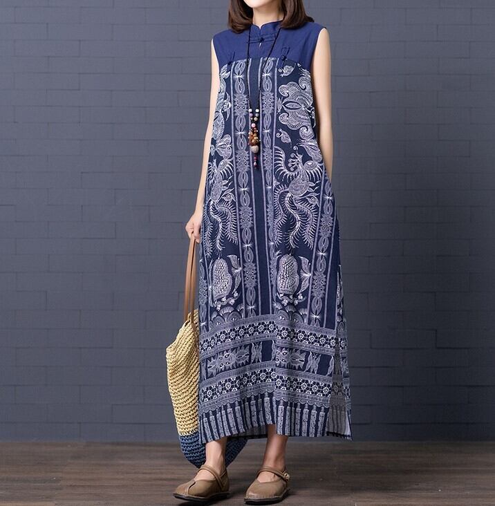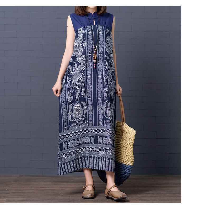 【 M 〜 2XL 】 大きいサイズ レディース ノースリーブ サマー ロング ドレス プリント カジュアル エスニック レトロ ワンピース 2l 70903