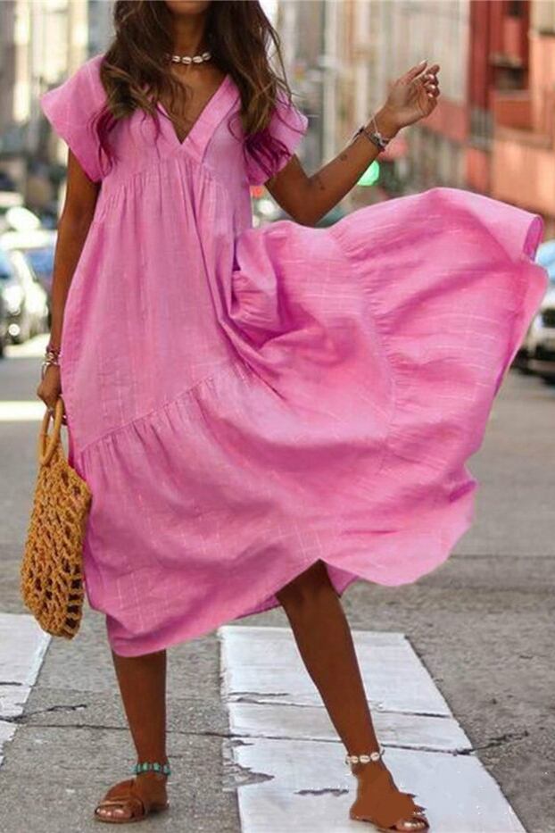☆ 夏 ゆったり Vネック レディース ワンピース ドレス ☆