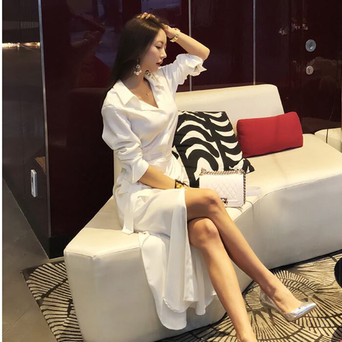 【 S 〜 XL 】 大きいサイズ レディース ファッション 夏 新作 ロング ドレス エレガント パーティー 長袖 ハイウエスト ワンピース 70869