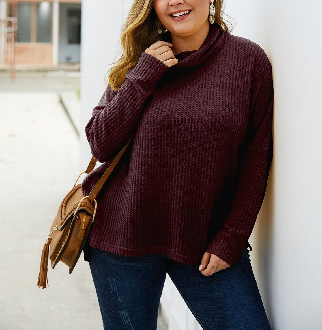 ● プラスサイズ タートルネック ゆったり 長袖 ブラウス シャツ ●