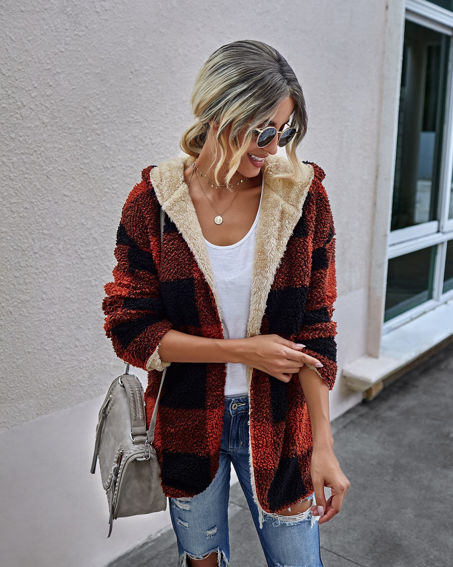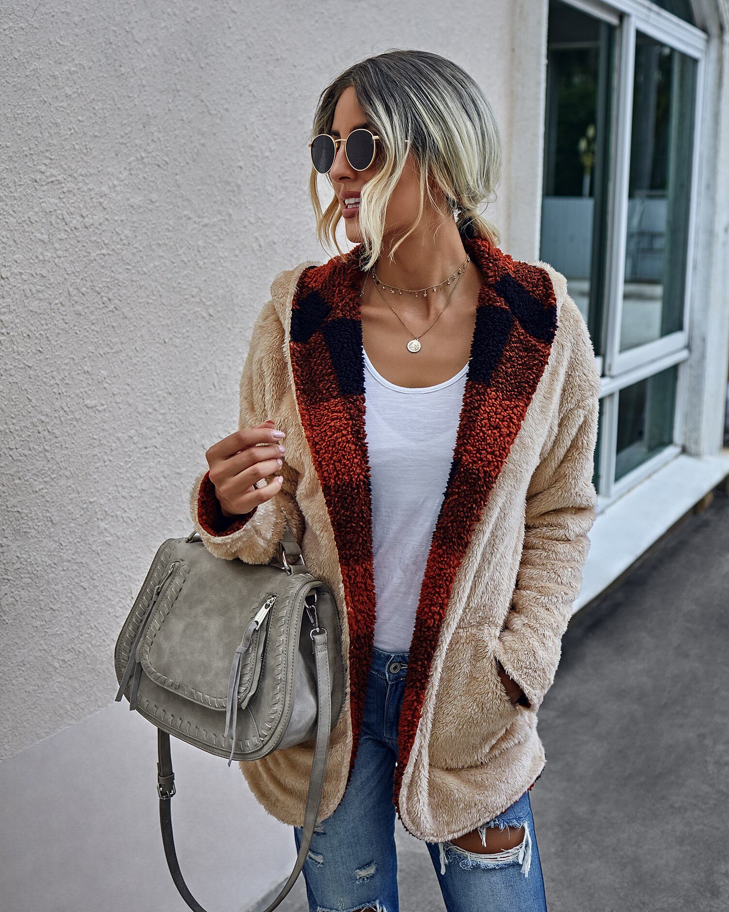 【 S 〜 XL 】 大きいサイズ 秋 冬 ファッション リバーシブル ジャケット フード付き チェック柄 レディース コート M L 71052