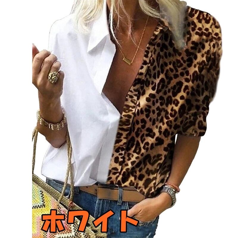 ● プラスサイズ レディース 秋 春 ロングスリーブ ヒョウ柄 プリント シャツ ●