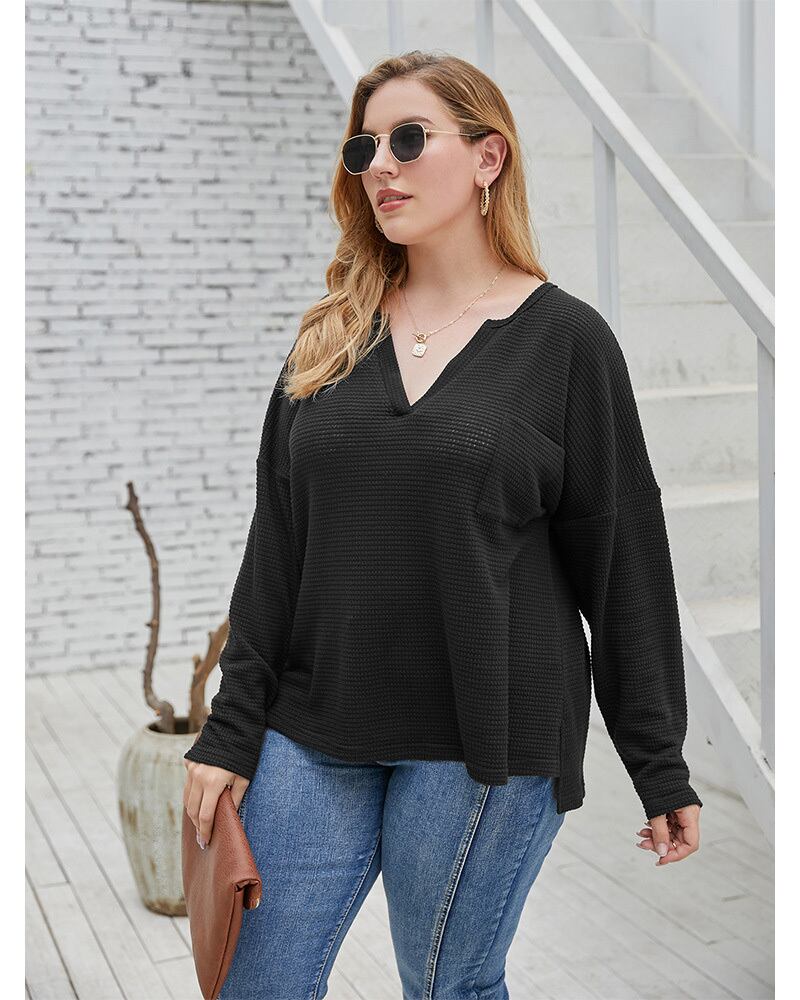 ● プラスサイズ カジュアル ルーズ tシャツ vネック 長袖 シャツ ●