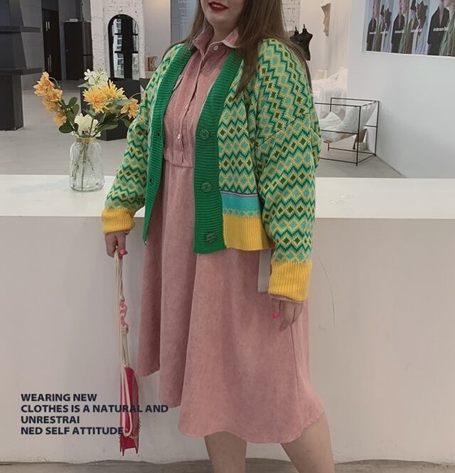 ● ビッグサイズ コーディロイ ピンク ハイウエスト ドレス ●