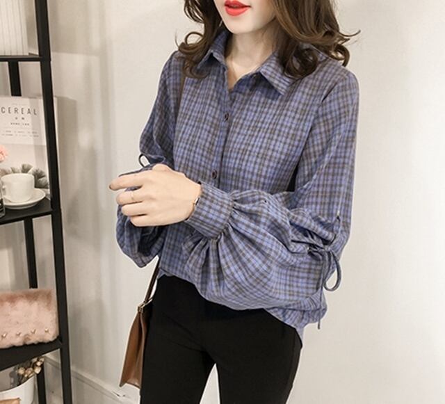 大きいサイズ レディース 長袖 テェック柄 レトロ シャツ ルーズ トップス 71031