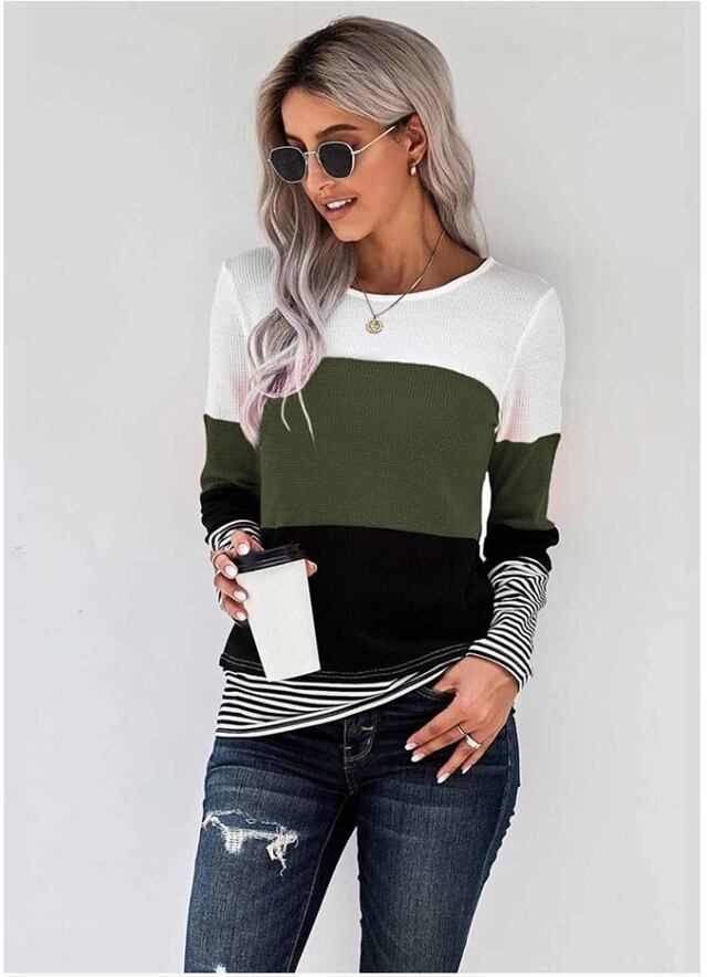 大きいサイズ レディース ストライプ 長袖 シャツ ワンピース カジュアル tシャツ 71033