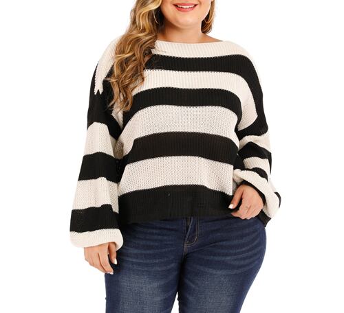 ● ビッグサイズ ストライプ 長袖 ファッション セーター ●