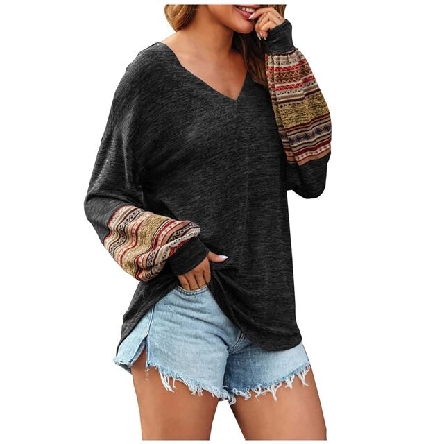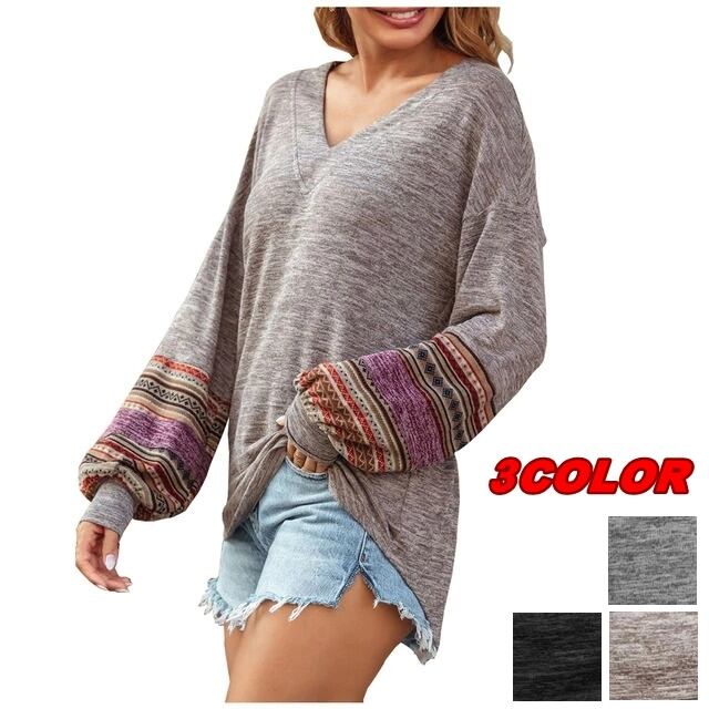 大きいサイズ ランタン ロングスリーブ vネック カジュアル tシャツ レディース トップス 71018