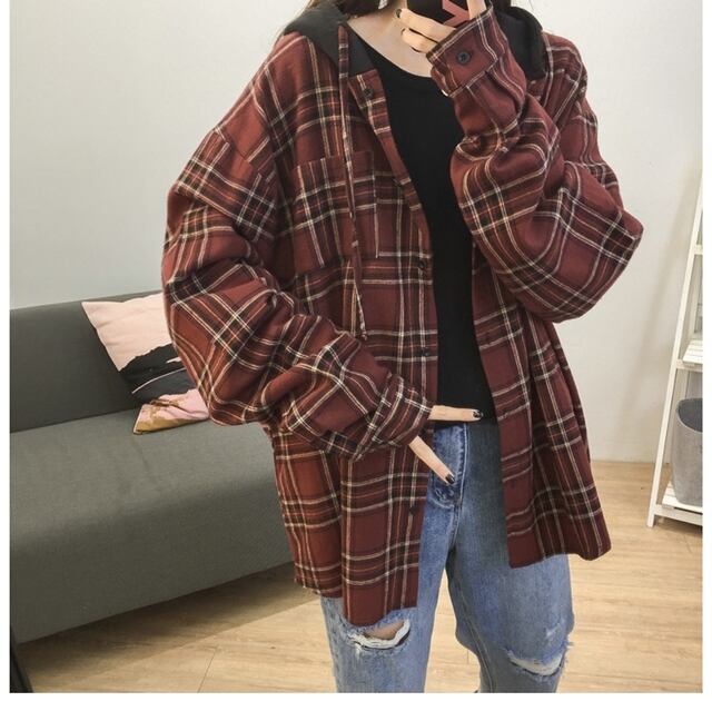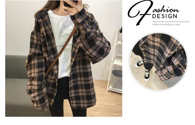 大きいサイズ チェック柄 ルーズ コート ジャケット パーカー ヴィンテージ レディース 71022