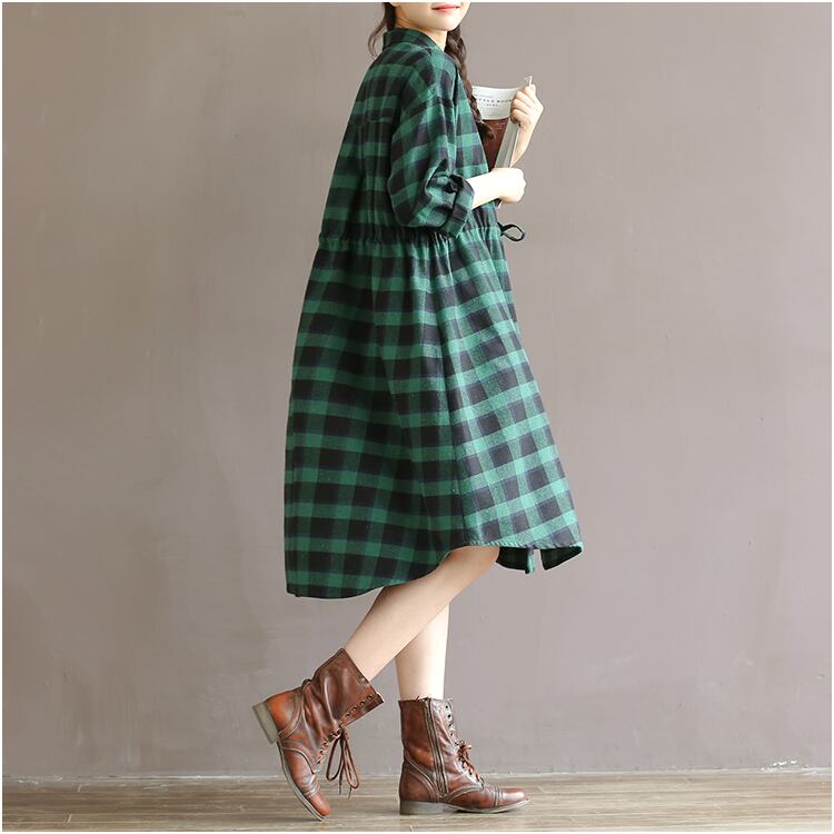 大きいサイズ レディース ビッグ トップス チェック 柄 長袖 シャツ スカート ワンピース M L XL 2XL 70995