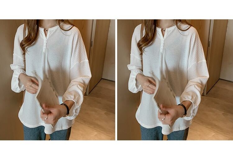 ★ プラスサイズ 長袖 ?ネック ゆったり ボタン シャツ ★