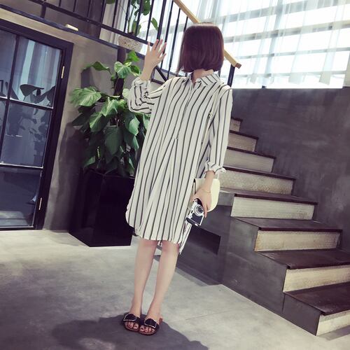 ★ ストライプ ゆったり ルーズ カジュアル シャツ ワンピース ★