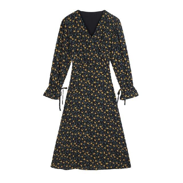 【 S 〜 4XL 】 大きいサイズ vネック 長袖 花柄 ワンピース ゆったり ミディ スカート レディース ドレス 3XL 2XL XL 71068