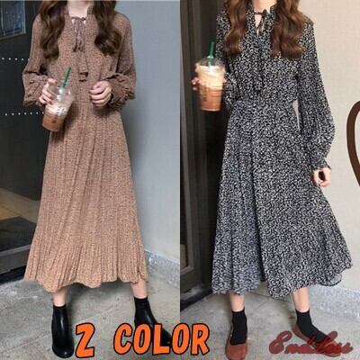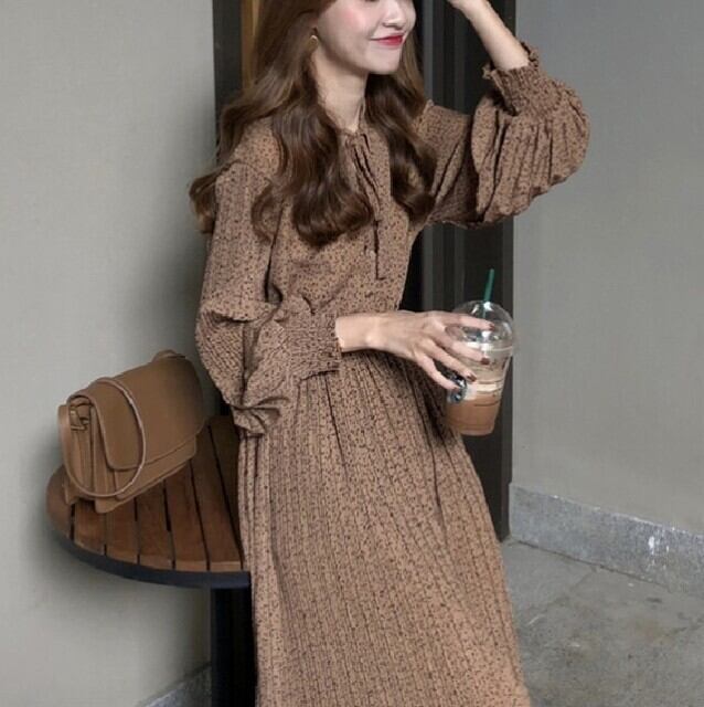 大きいサイズ 花柄 長袖 ヴィンテージ ドレス 秋 ウエストカバー ロング シャツ ワンピース XL L 71070