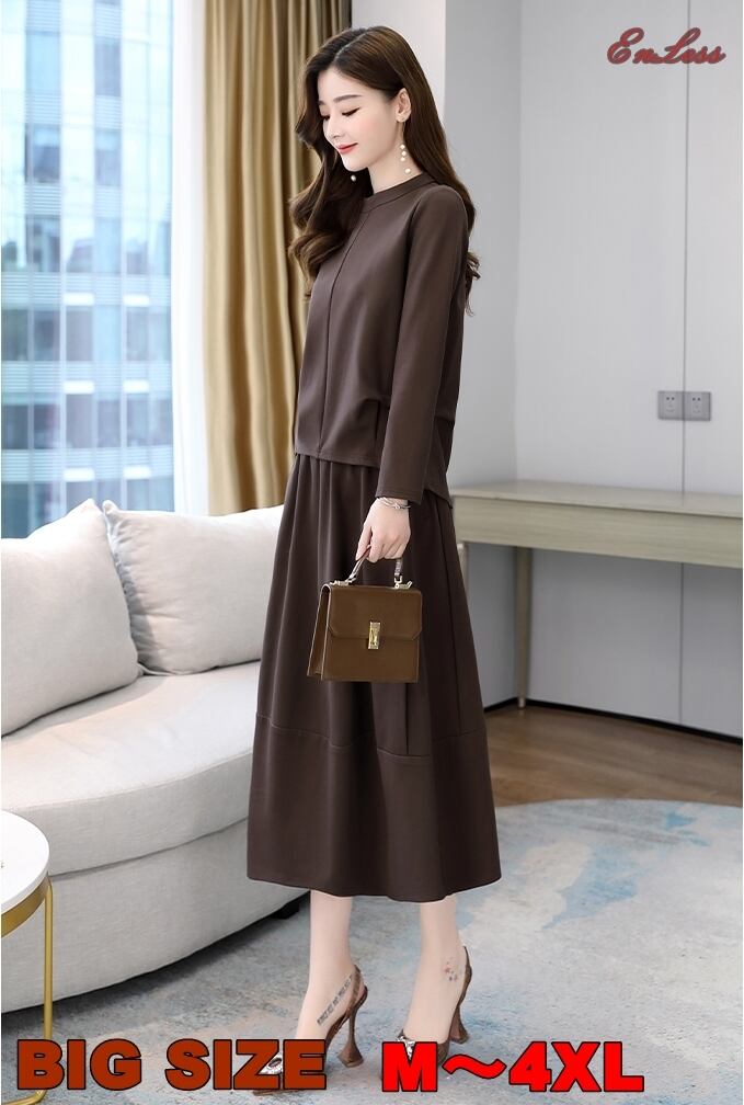 【 M 〜 4XL 】 大きいサイズ カジュアル 2ピース トップス スカート ドレス ファッショナブル レディース スーツ 3XL 2XL XL 71075