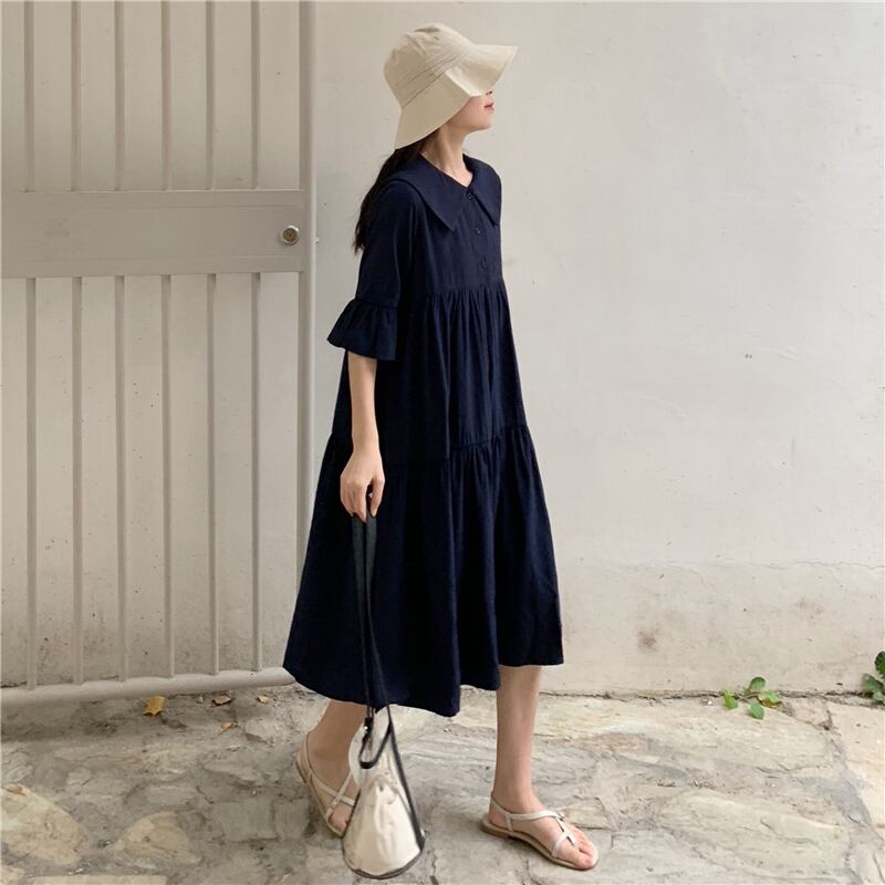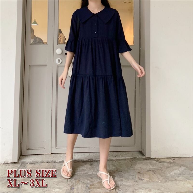 大きいサイズ レディース 膝丈 ゆったり 半袖 ドレス スカート サマー ワンピース XL 2XL 3XL 70984