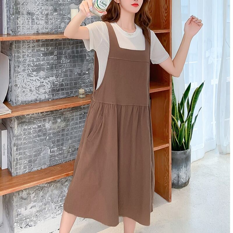 大きいサイズ レディース ノースリーブ スリング ドレス コットン ベスト スカート ストラップ ワンピース XL 2XL 3XL 4XL 5XL 70983