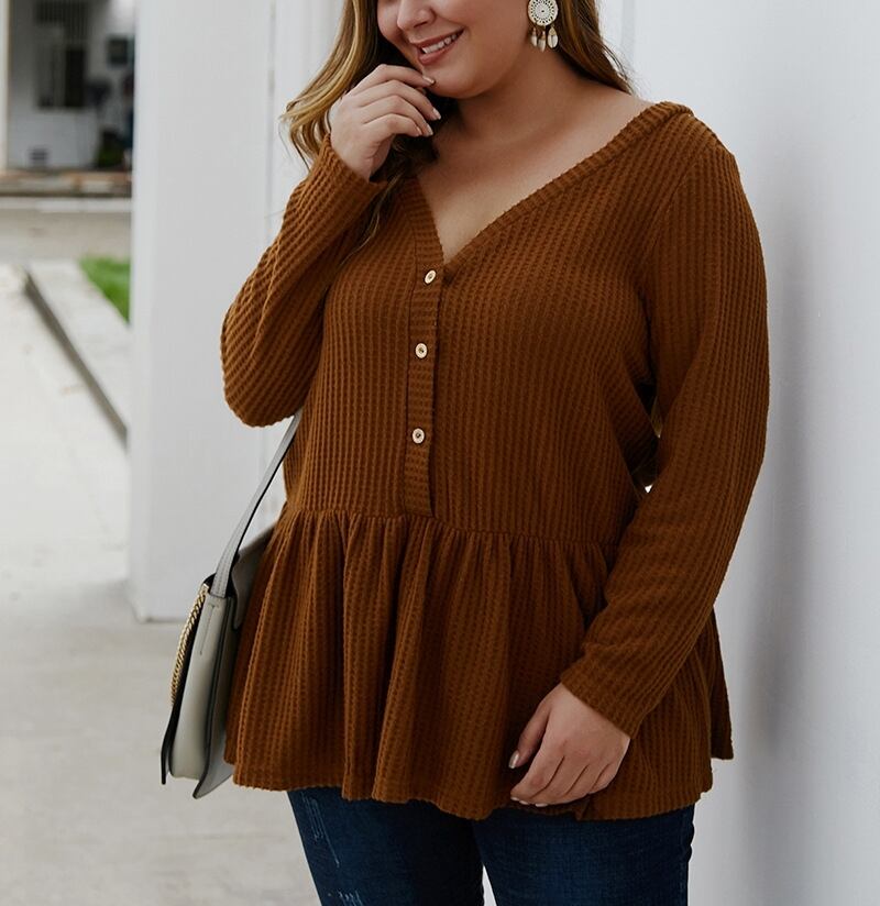 大きいサイズ レディース 長袖 ニット プルオーバー ブラウス シャツ セクシー Vネック ロング シャツ カジュアル お出かけ XL 2XL 3XL 70958