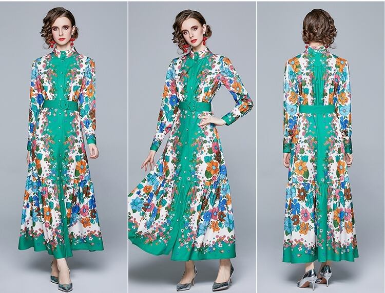 【 M 〜 2XL 】 大きいサイズ ルーズ フローラル 花柄 プリント ドレス 長袖 スイング スカート ロング レディース XL L 71096