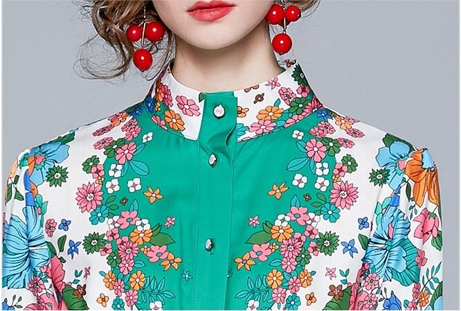 ◆ プラスサイズ シングルブレストボタン ルーズ プリント スイングドレスです。