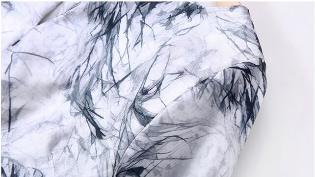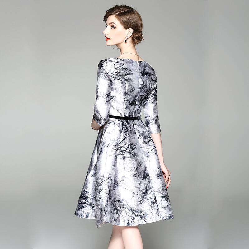 ◆ プラスサイズ 春 サテンインクプリント Vネック ミッドスカート ドレスです。