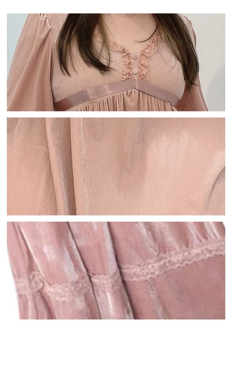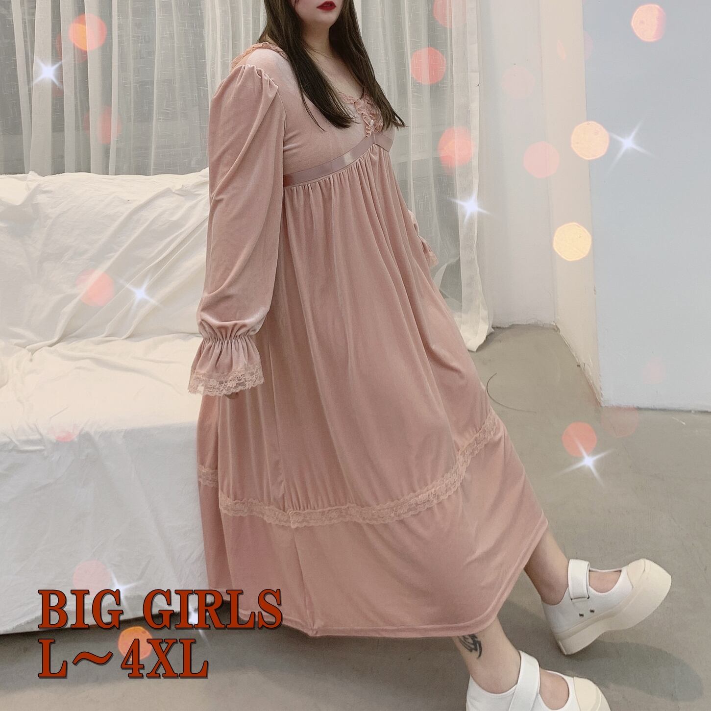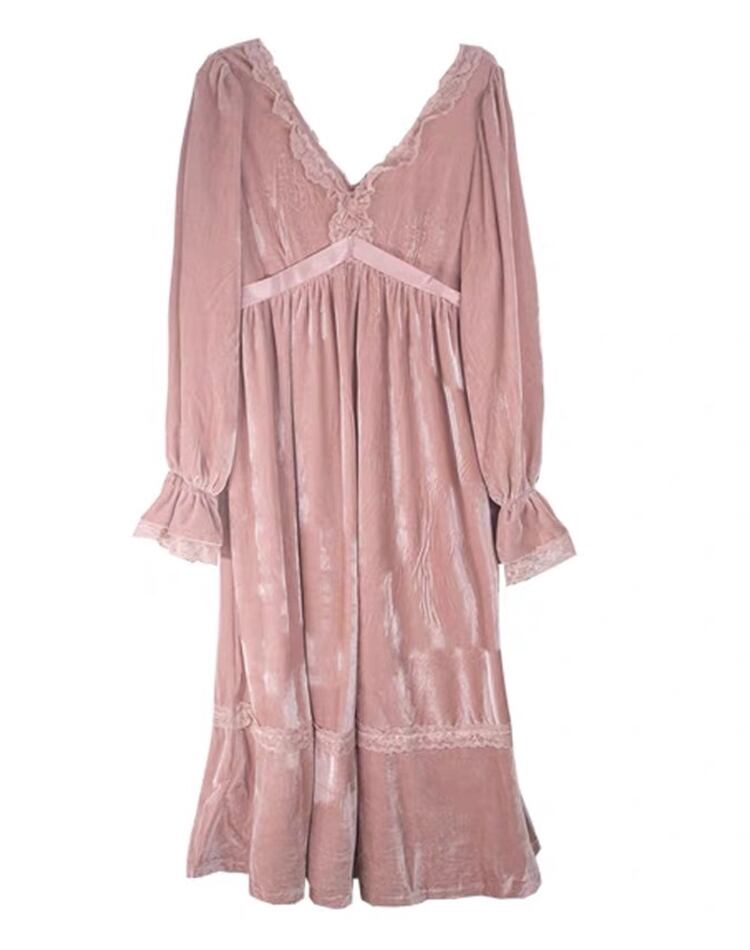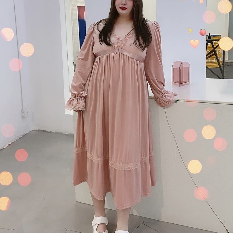 【 L 〜 4XL 】 大きいサイズ 長袖 vネック ベルベット ロング ピンクドレス ゆったり レディース 3XL 2XL XL 71107