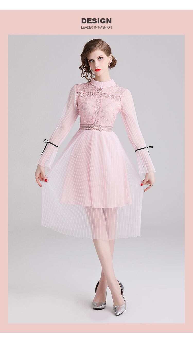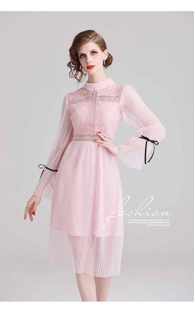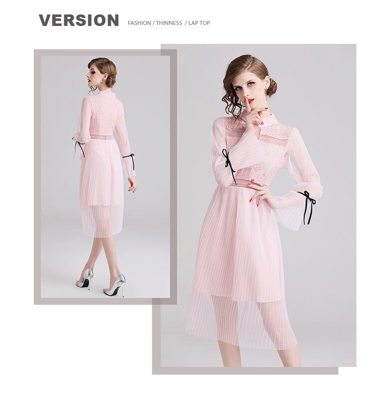 【 M 〜 2XL 】大きいサイズ レース ドレス プリーツ メッシュ ステッチ ドレス XL L 71114
