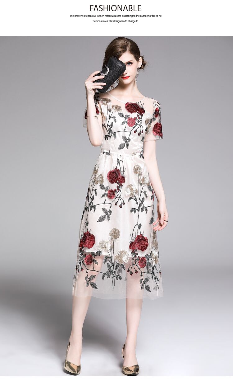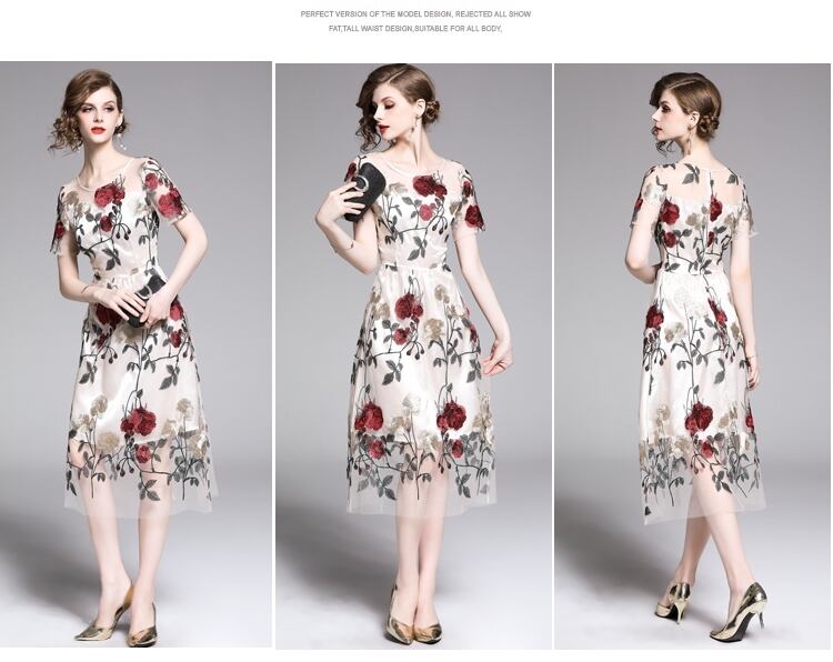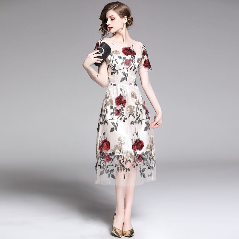 【 S 〜 2XL 】 大きいサイズ レディース 花柄 刺繍 フラワー レース 半袖 ロング スカート ドレス XL L 71125