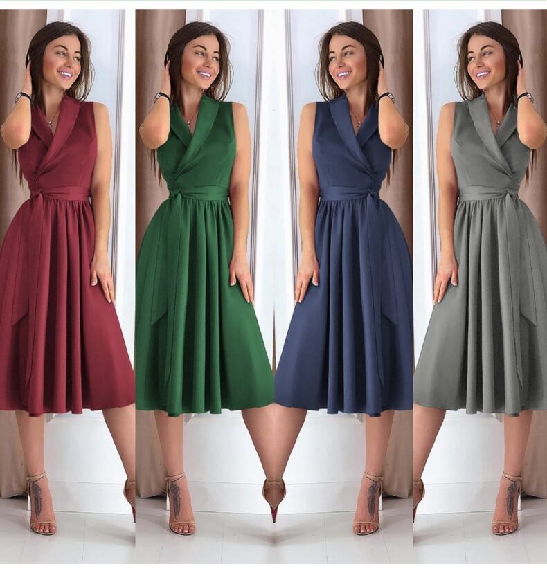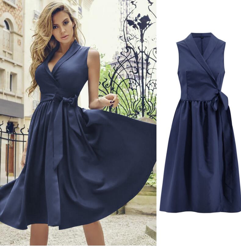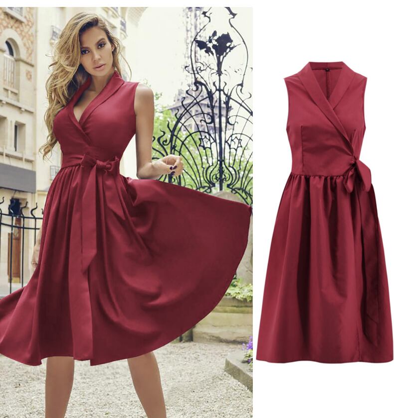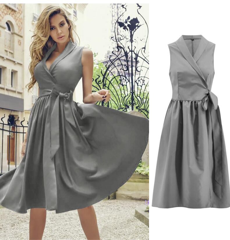 【 S 〜 2XL 】 大きいサイズ ノースリーブ ディープ Vネック サマー 夏 ドレス レディース スカート XL L71132