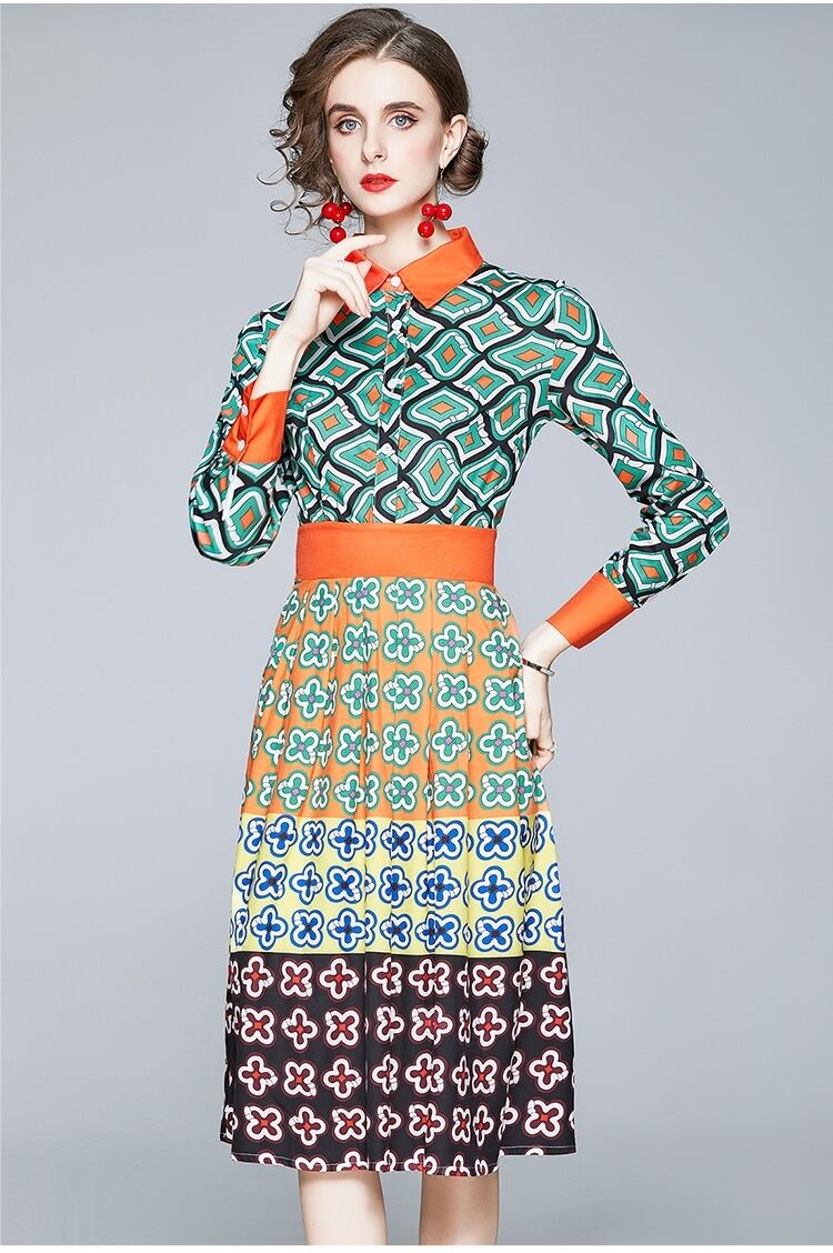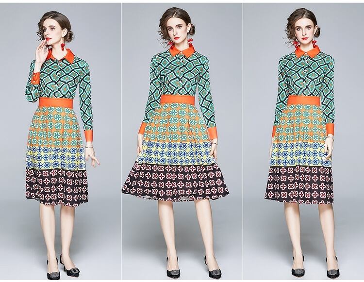 【 M 〜 2XL 】 大きいサイズ レディース 長袖 春 秋 プリント シャツ ワンピース ロング ドレス XL L 71134
