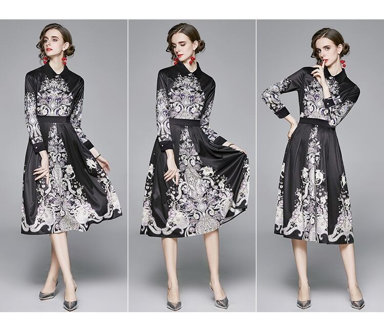 ◆ プラスサイズ ツーピースセット バロック様式スタイル トップス+スカート エレガントドレスです。