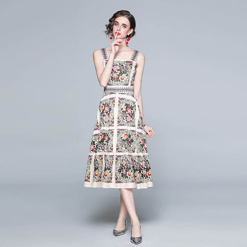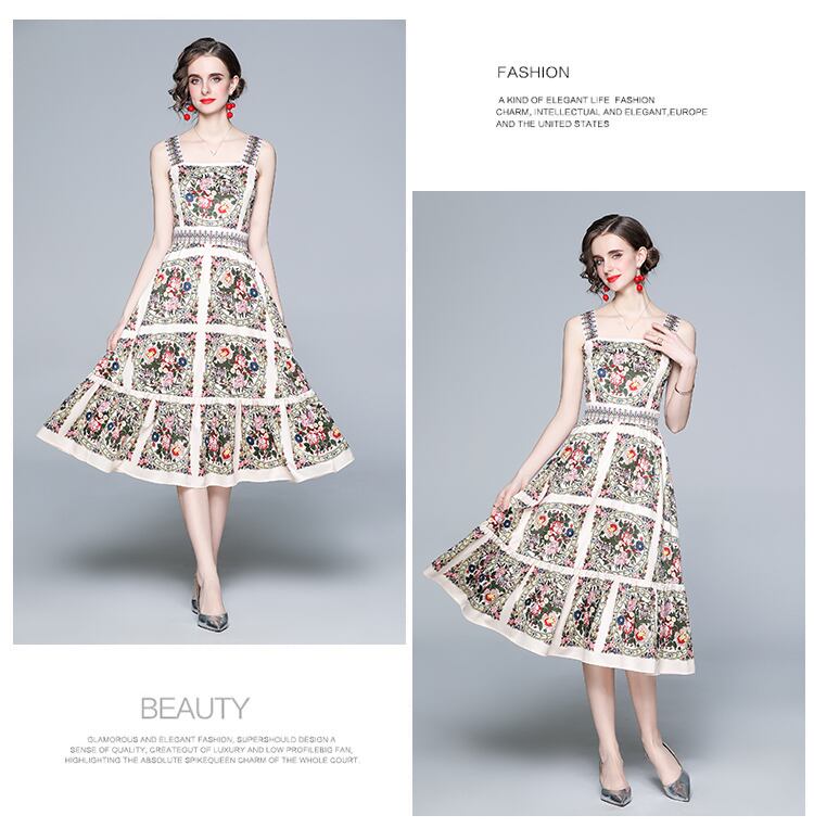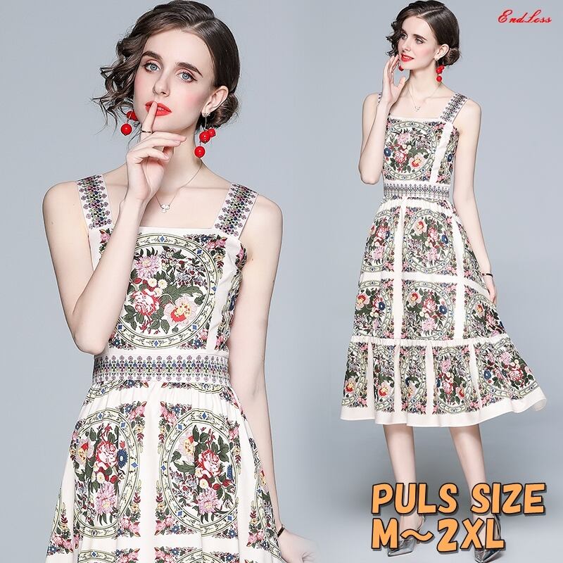 【 M 〜 2XL 】 大きいサイズ レディース 花柄 プリント スリング ワンピース ドレス XL L 71151