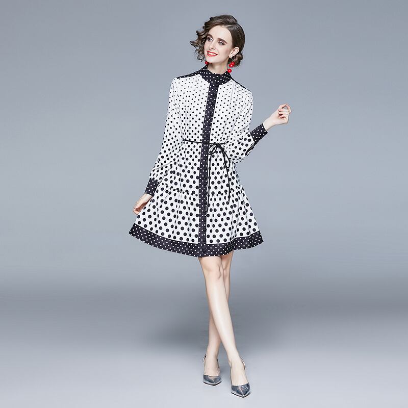 【 M 〜 2XL 】 大きいサイズ レディース ドット 長袖 ショート スカート シャツ ドレス。 71153