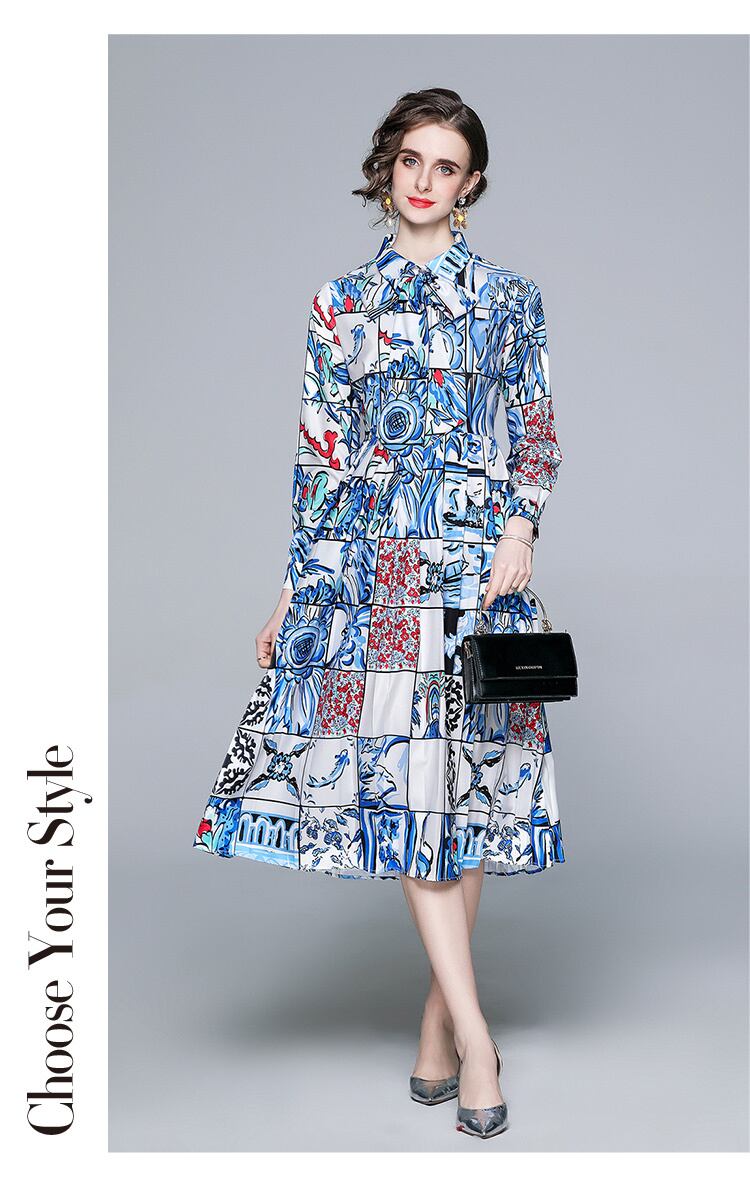 【 M 〜 2XL 】 大きいサイズ レース 花柄 プリント 長袖 ミドル丈 シャツ ワンピース 71154