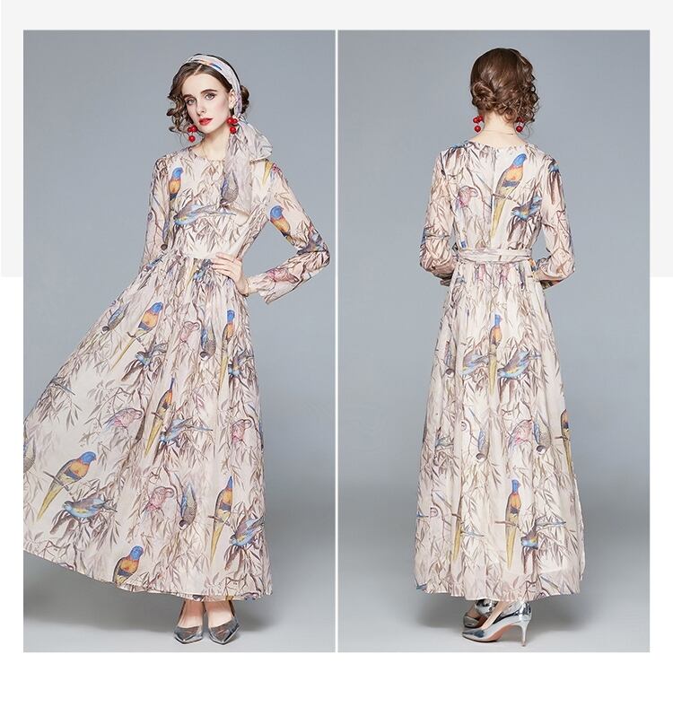 ◆ プラスサイズ 春新作 長袖 プリント ビッグスイング ネクタイ ロングドレスです。