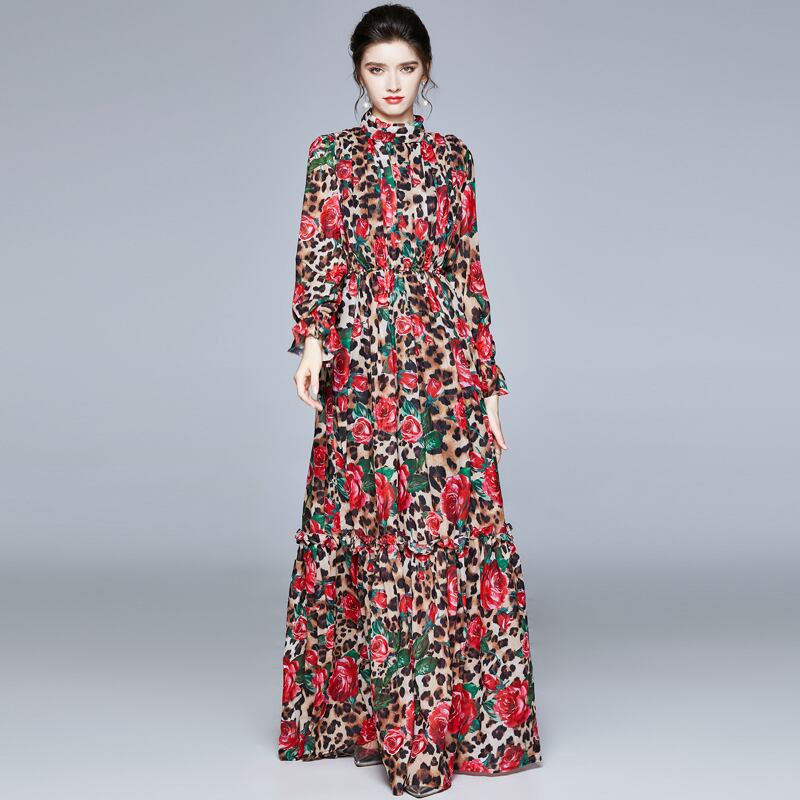 【 M 〜 2XL 】大きいサイズ ビッグスイング スカート 花柄 ヒョウ柄 ロング ドレス レディース ワンピース XL L 71167
