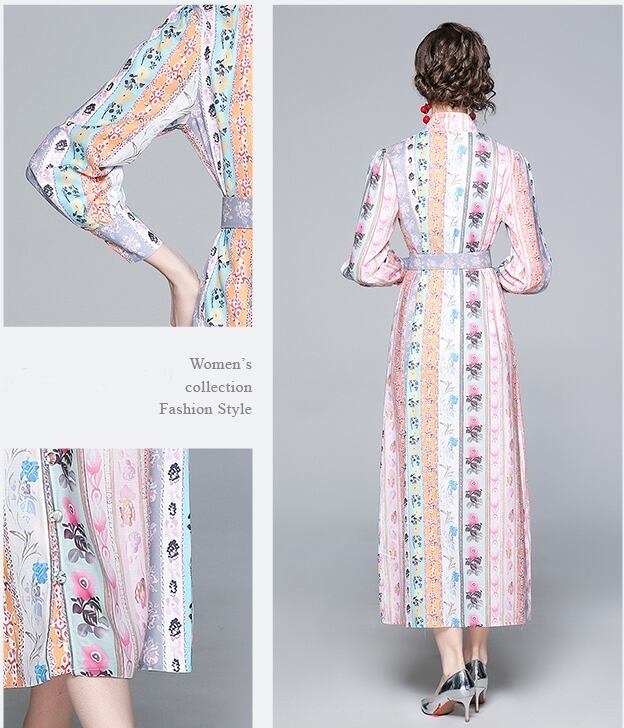 【 M 〜 2XL 】大きいサイズ レディース 春新作 ピンク プリント 長袖 ロング ドレス ワンピース シャツ XL L 71168