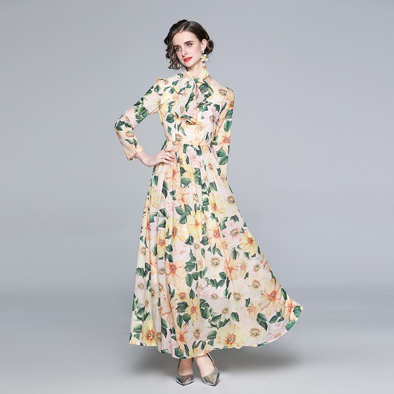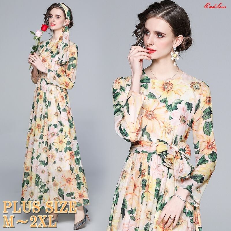 【 M 〜 2XL 】大きいサイズ 長袖 スイング スカート 花柄 ロング ドレス XL L 71170