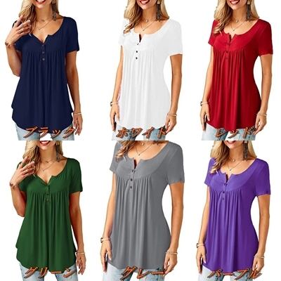 【 S 〜 5XL 】大きいサイズ 夏 レディース ボタン ルーズ 半袖 Tシャツ カジュアル 4XL 3XL 2XL 70418