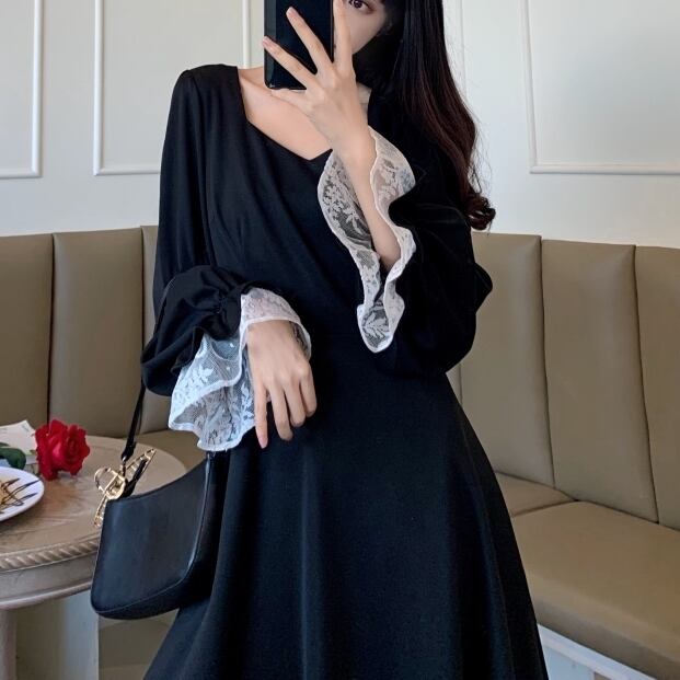 ● ラージサイズ レースステッチ デザインフレンチドレスです。