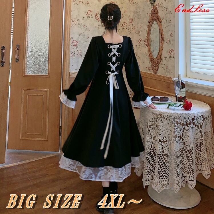 【 M 〜 4XL 】 大きいサイズ レディース レース ステッチ フレンチ ロング デザイン スカート ドレス 4l 3l 2l xl 108