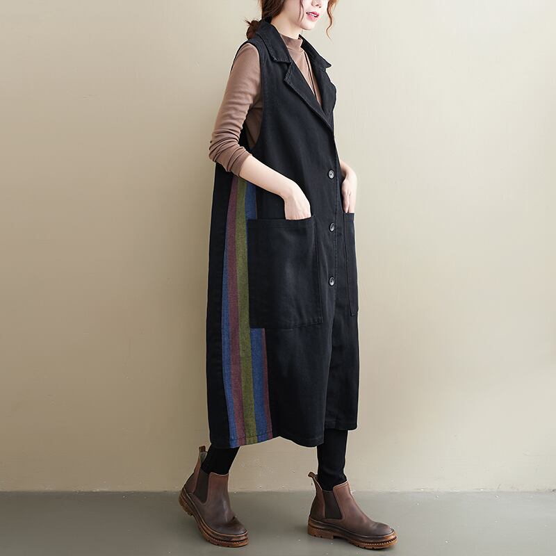 【 M 〜 XL 】 大きいサイズ レディース デニム ベスト ロング ジャケット ノースリーブ カジュアル ビッグサイズ チョッキ 129